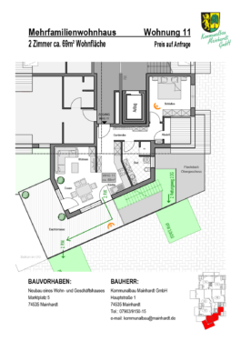 Hier entsteht bis 2026 am Marktplatz 5 ein neues Gebäude der Kommunalbau Mainhardt GmbH, das modernes Wohnen und Behandeln vereint. Das Wohn- und Geschäftshaus bietet optimalen Raum für Privat- und Geschäftsleute zugleich.